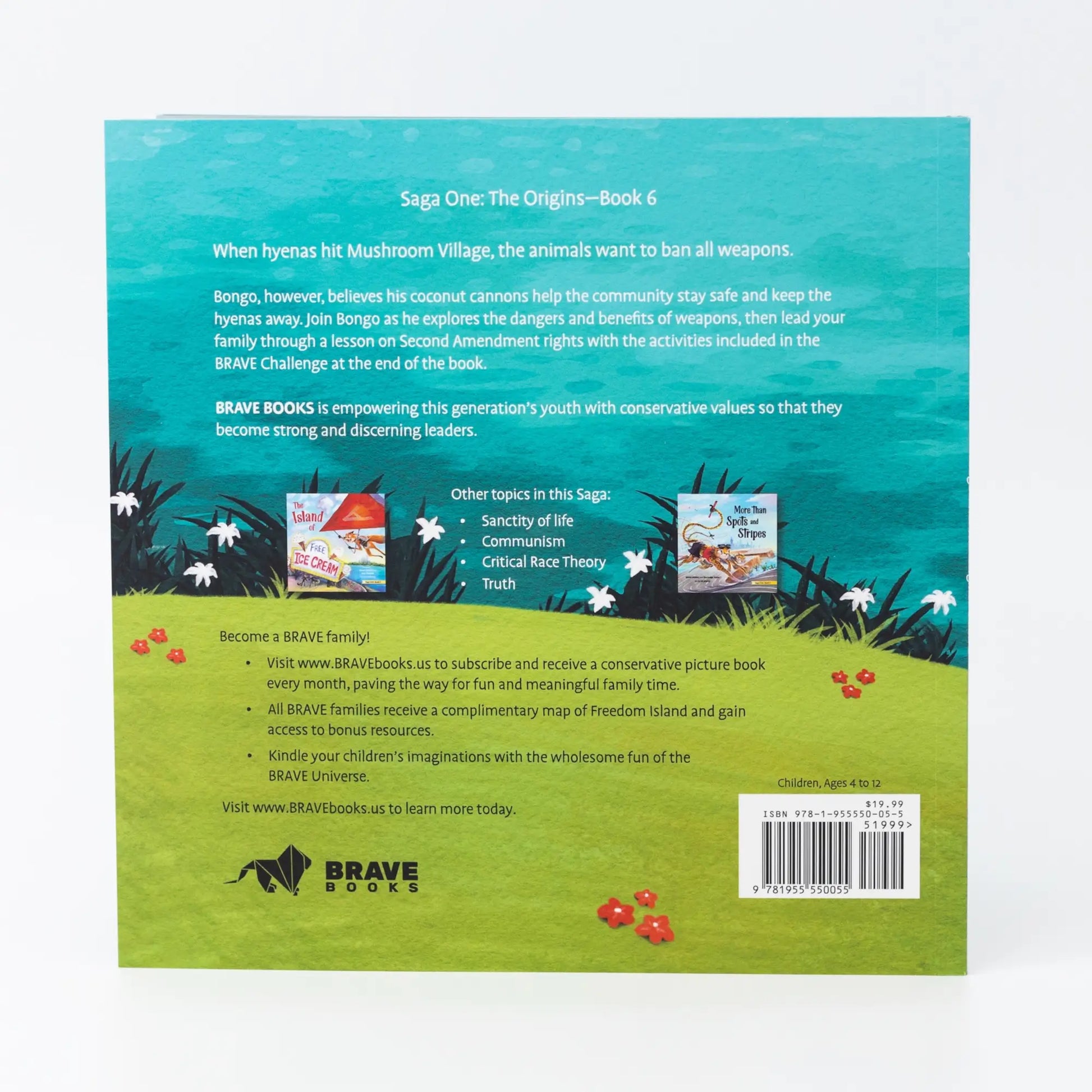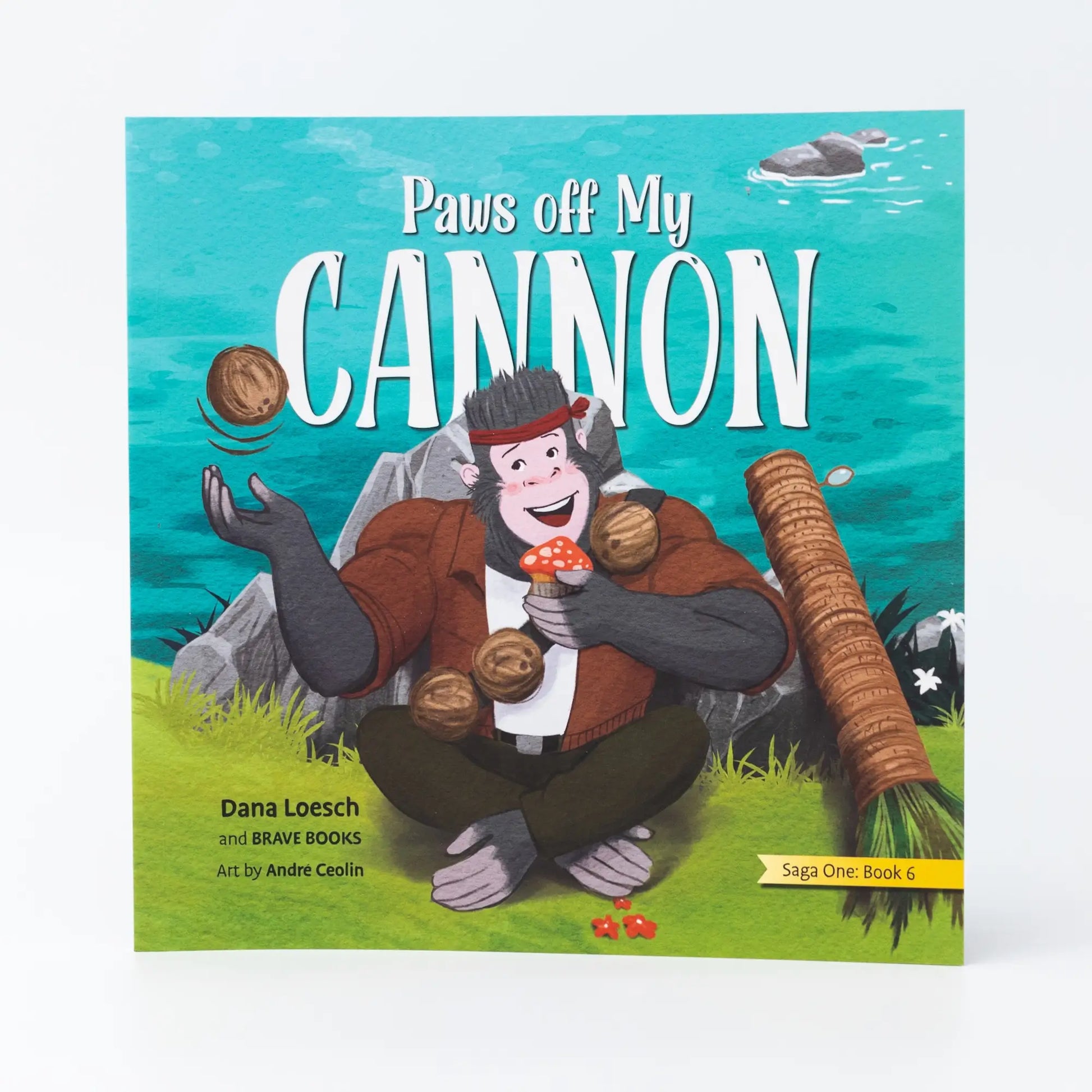 In Dana Loesch's book Paws Off My Cannon, follow Bongo, a daring and hungry gorilla, who loves eating food, especially mushroom-shaped cupcakes. But one day, a villainous hyena shoots a coconut at Bongo and his friend Bonnie. Bonnie is so upset at this misuse of coconut cannons that she suggests the village ban all coconut cannons. Bongo thinks that the hyenas are the problem, not the coconut cannons.