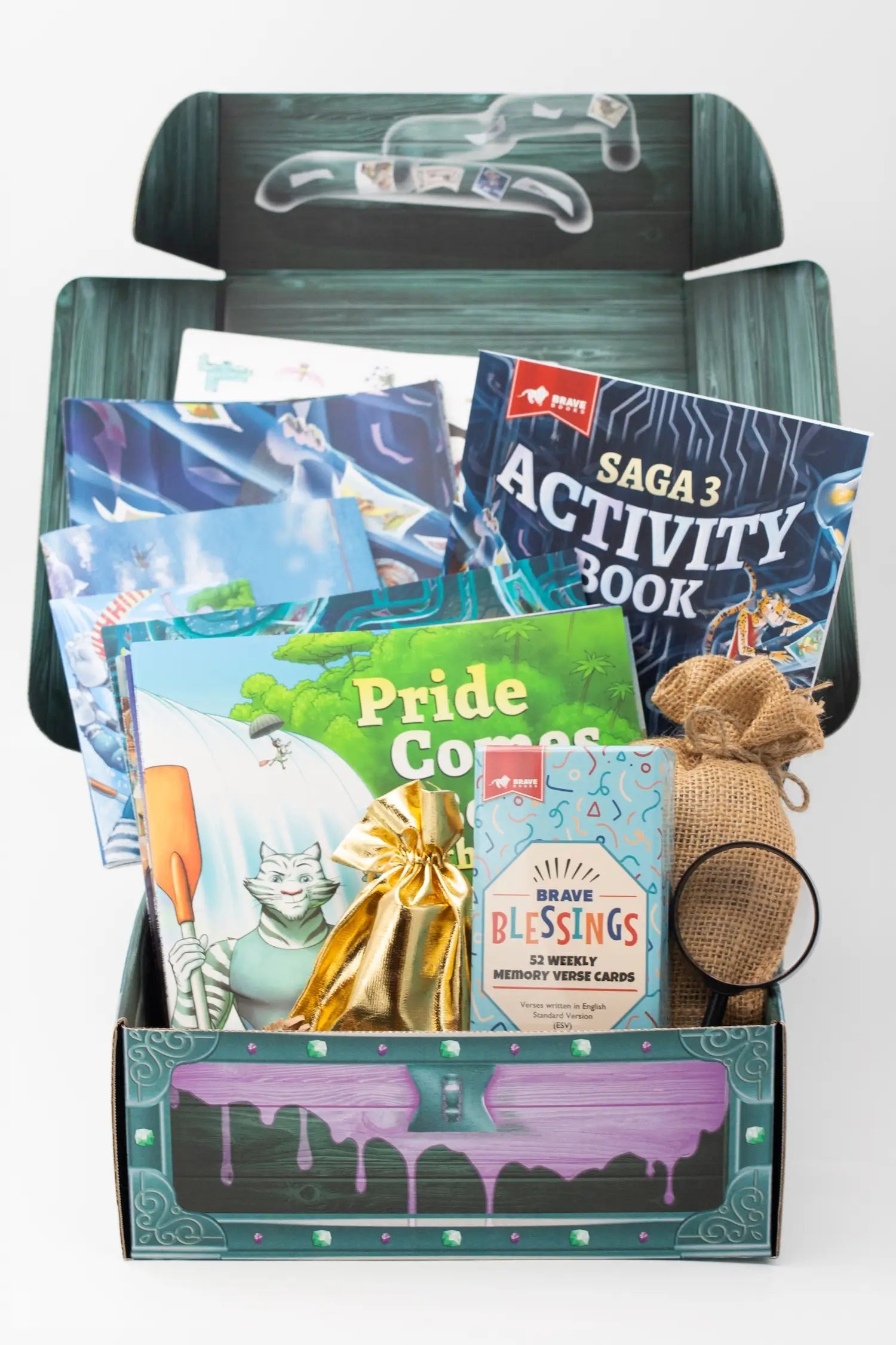 Welcome to the Saga Three Treasure Box! Dive into the complete collection of all TEN books in Saga Three. But that's not all! Alongside these epic tales, you'll find the Saga Three Activity Book, filled with engaging coloring pages, puzzles, thrilling mazes, and much more.